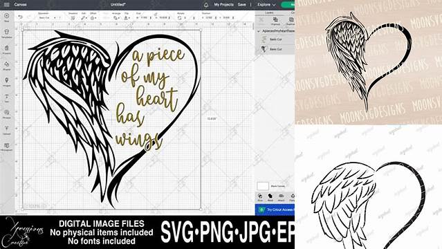 One of the best things about using a Half Heart Half Angel Wing SVG is its compatibility with various software programs. Popular design software like Adobe Illustrator and CorelDRAW fully support SVG files, providing you with comprehensive editing options. If you are looking for a free option, Inkscape is a great open-source program. Silhouette Studio is the perfect choice for Silhouette cutting machine users. Cricut Design Space is specifically designed for Cricut machines. These programs provide you with the ability to personalize the design, change colors, adjust sizes, and add text, which gives you complete control over your project. These various software options give you the freedom to work on any device and access a diverse range of tools to make amazing and creative content.