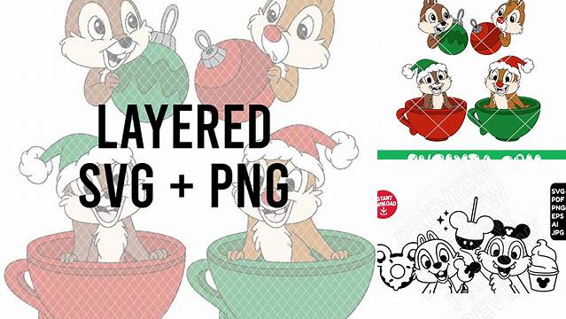 Combine the magic of Disney with the joy of Christmas with a Disney Chip and Dale Christmas SVG. These designs typically feature Chip and Dale dressed in festive attire, such as Santa hats and elf costumes. They're perfect for creating Christmas cards, ornaments, or holiday decorations.