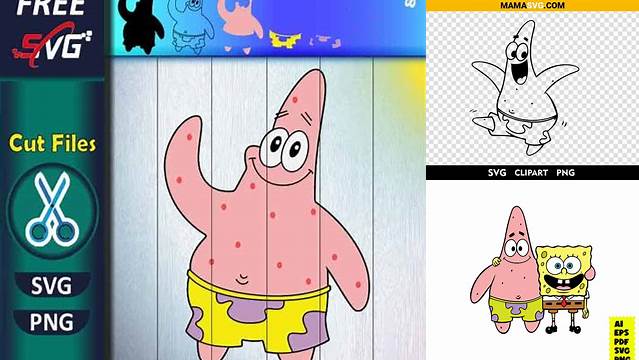 No Spongebob collection is complete without Patrick Star! Find free Patrick Star SVG files to complement your Spongebob designs. Patrick's goofy expressions and lovable personality make him a perfect addition to any project. Whether you're creating a T-shirt, a mug, or a party decoration, Patrick is sure to bring a smile to everyone's face. Look for SVG files featuring Patrick doing his signature poses, like catching jellyfish or eating a Krabby Patty. You can also find SVG files of Patrick with his best friend Spongebob, creating heartwarming and hilarious designs.